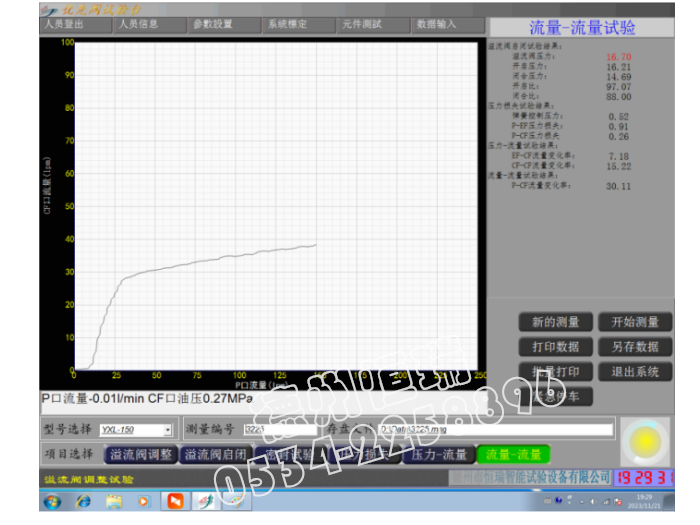 压力-转向流量试验、流量-转向流量试验、弹簧控制压力试验